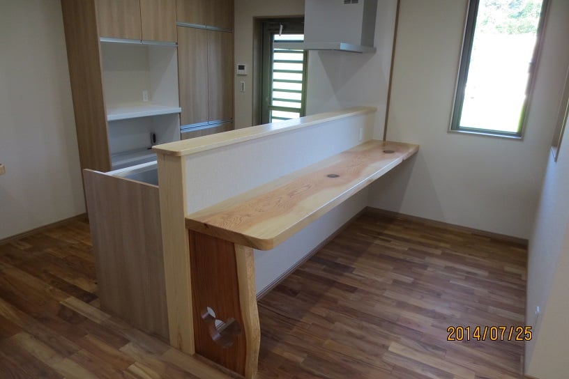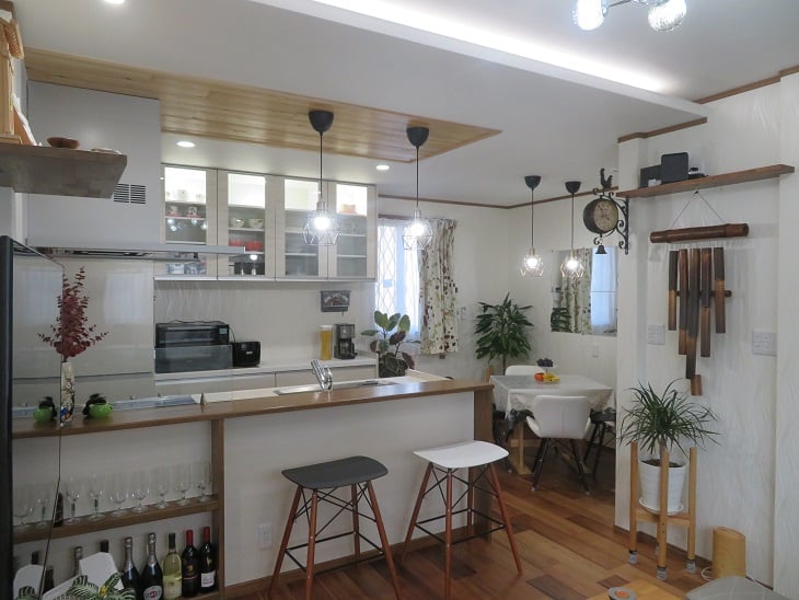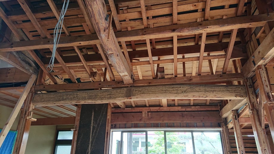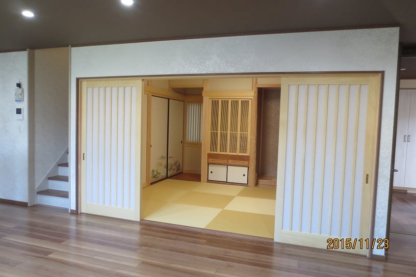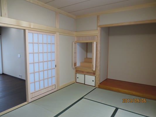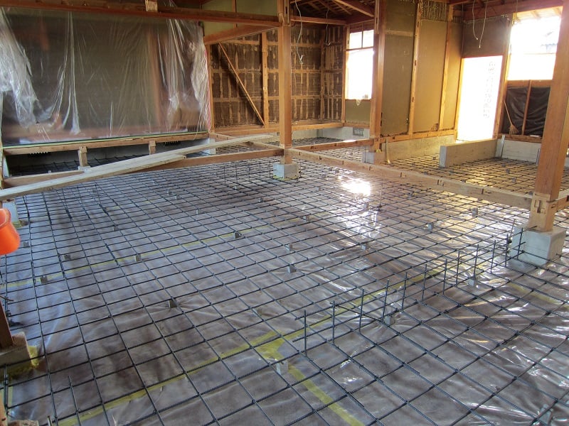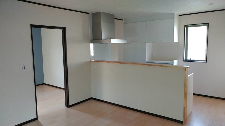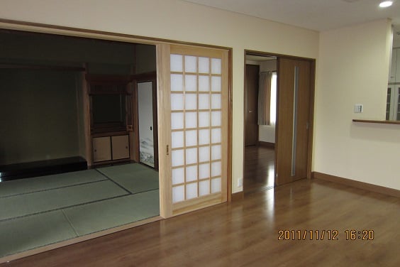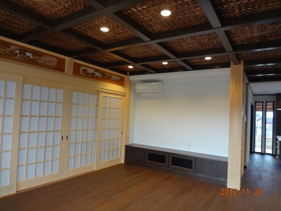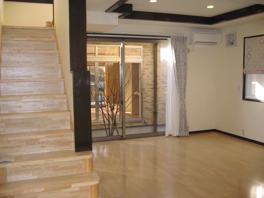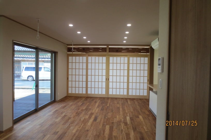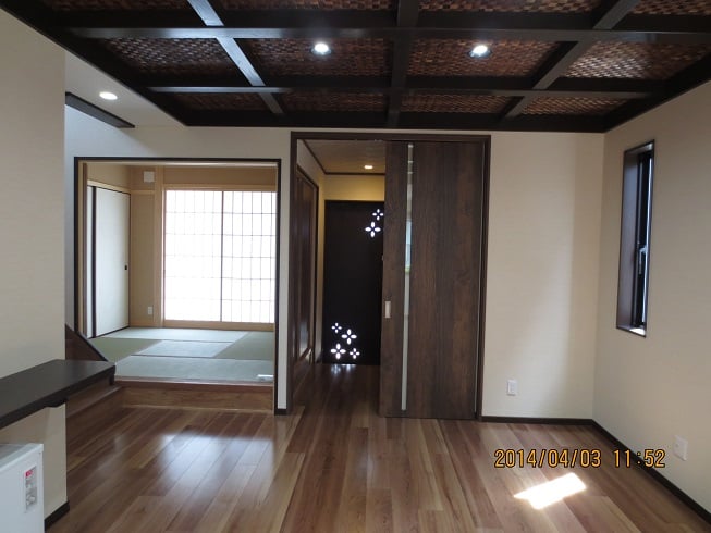広いLDKを中心に階段・トイレ・和室・洋室のリフォームを施工させて頂きました。土間から湿気が上がらない事と、耐震用に鉄筋コンクリートの土間仕上げにさせて頂きました。天井は低い既存の梁材を撤去して新しい梁材入れました。天井も高くなり気持ちの良いLDKに仕上がりました。
