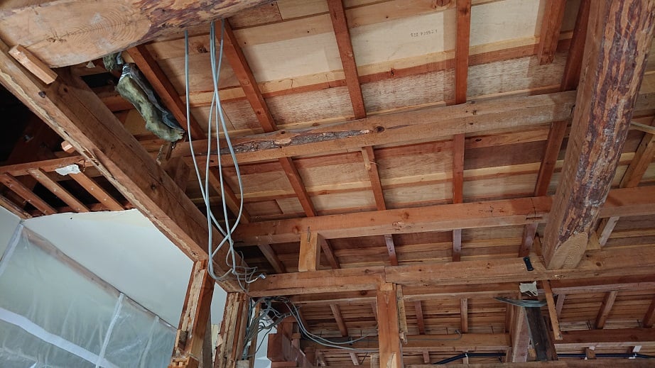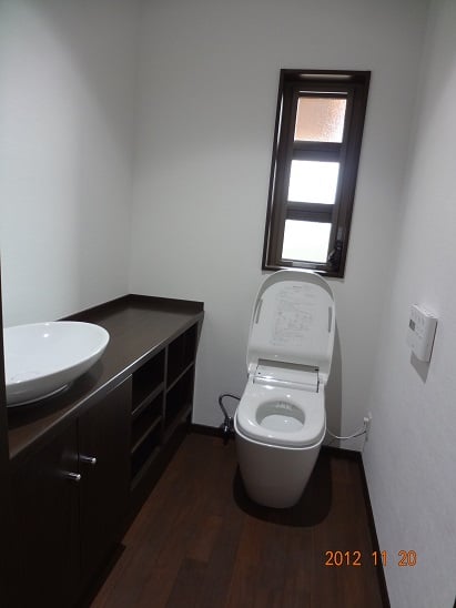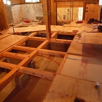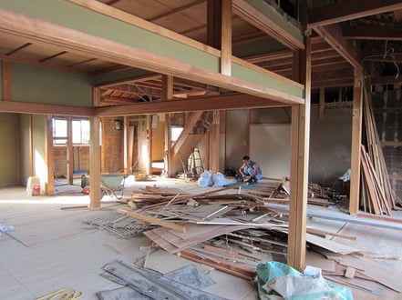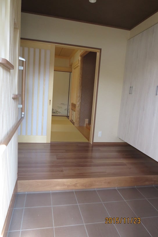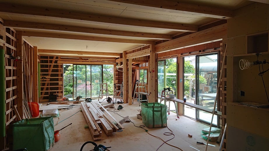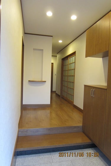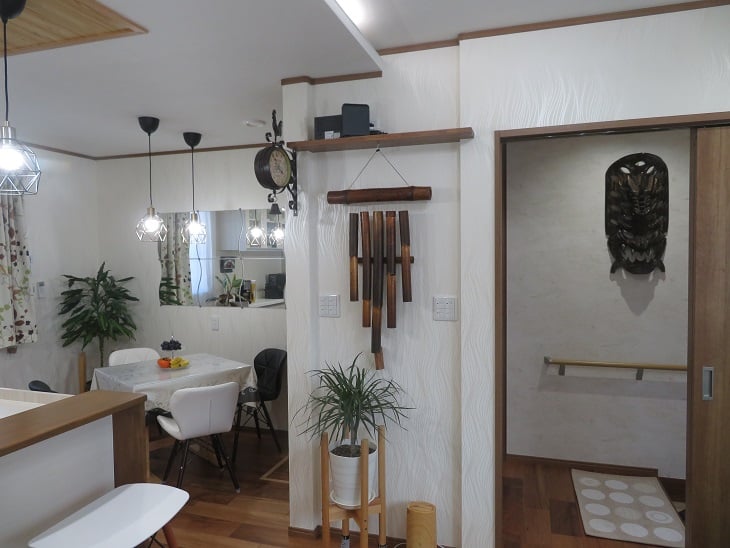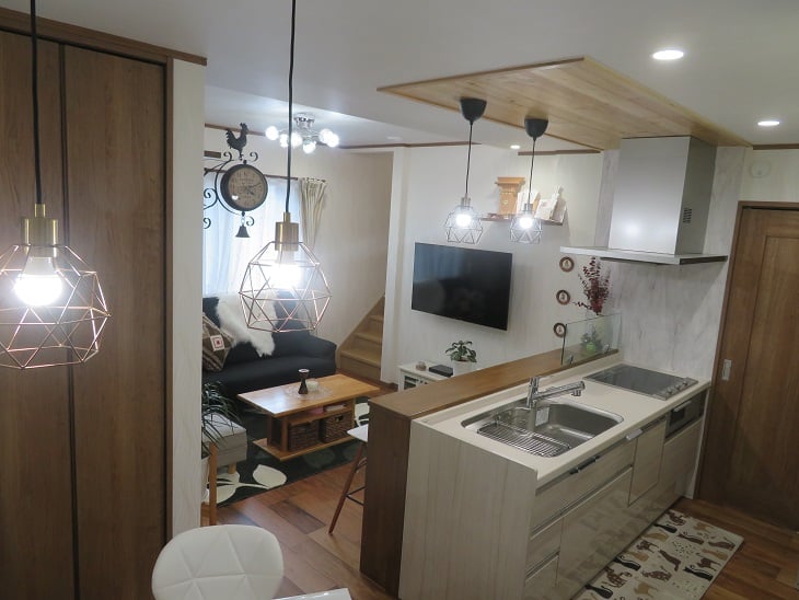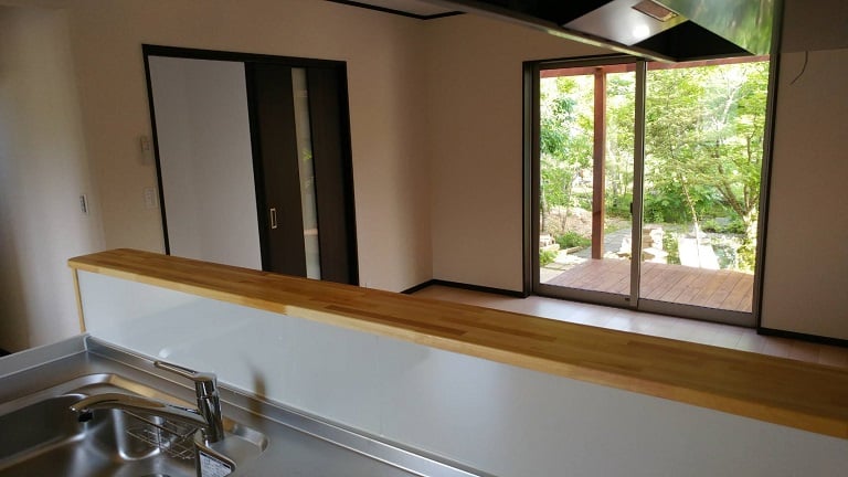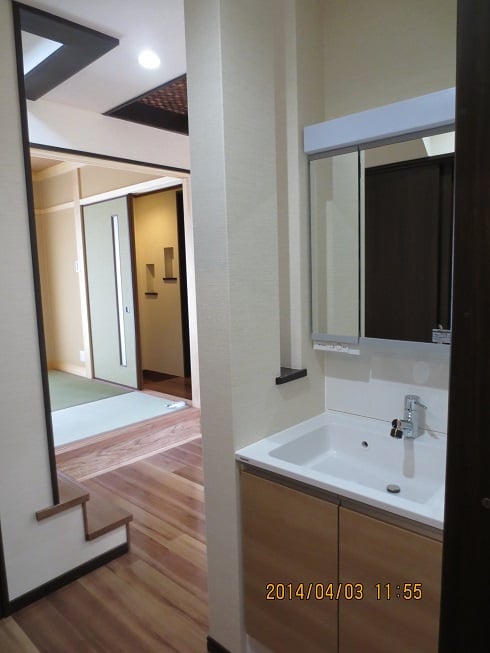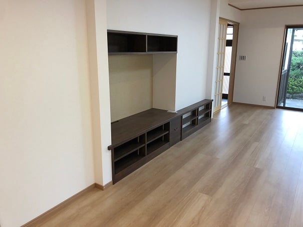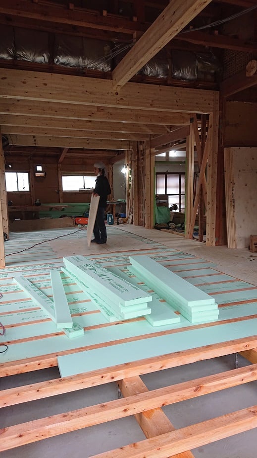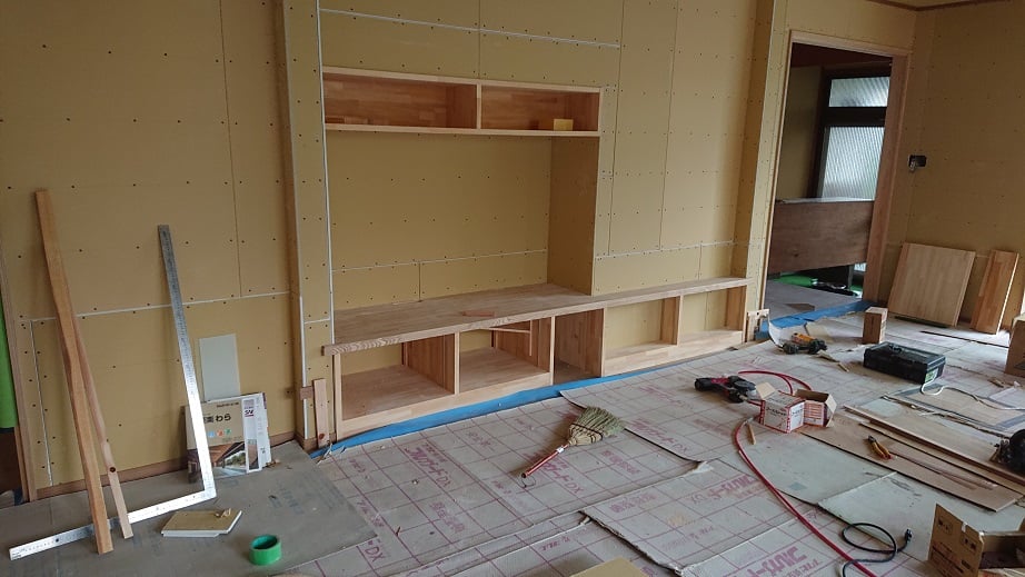 広いLDKを中心に階段・トイレ・和室・洋室のリフォームを施工させて頂きました。土間から湿気が上がらない事と、耐震用に鉄筋コンクリートの土間仕上げにさせて頂きました。天井は低い既存の梁材を撤去して新しい梁材入れました。天井も高くなり気持ちの良いLDKに仕上がりました。
